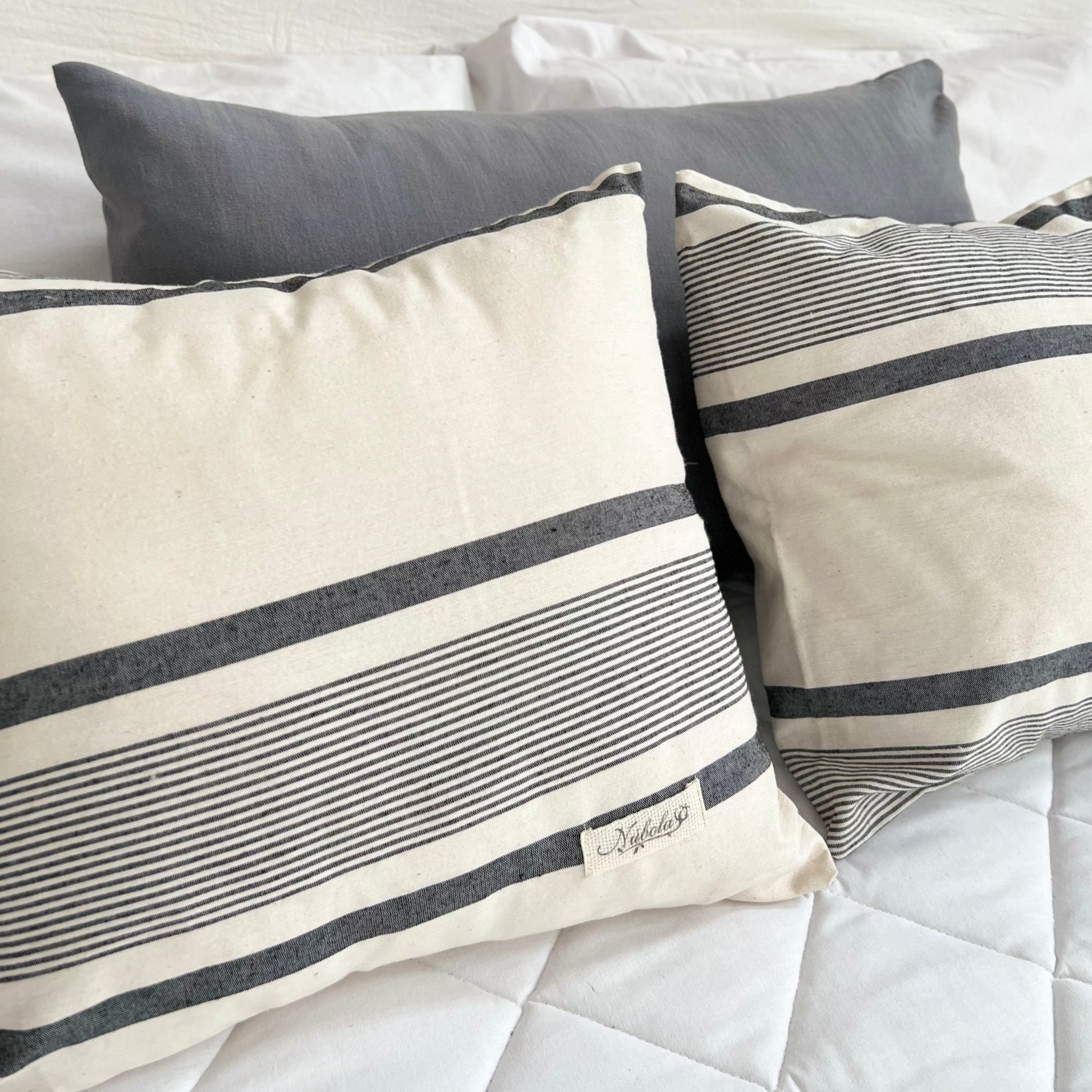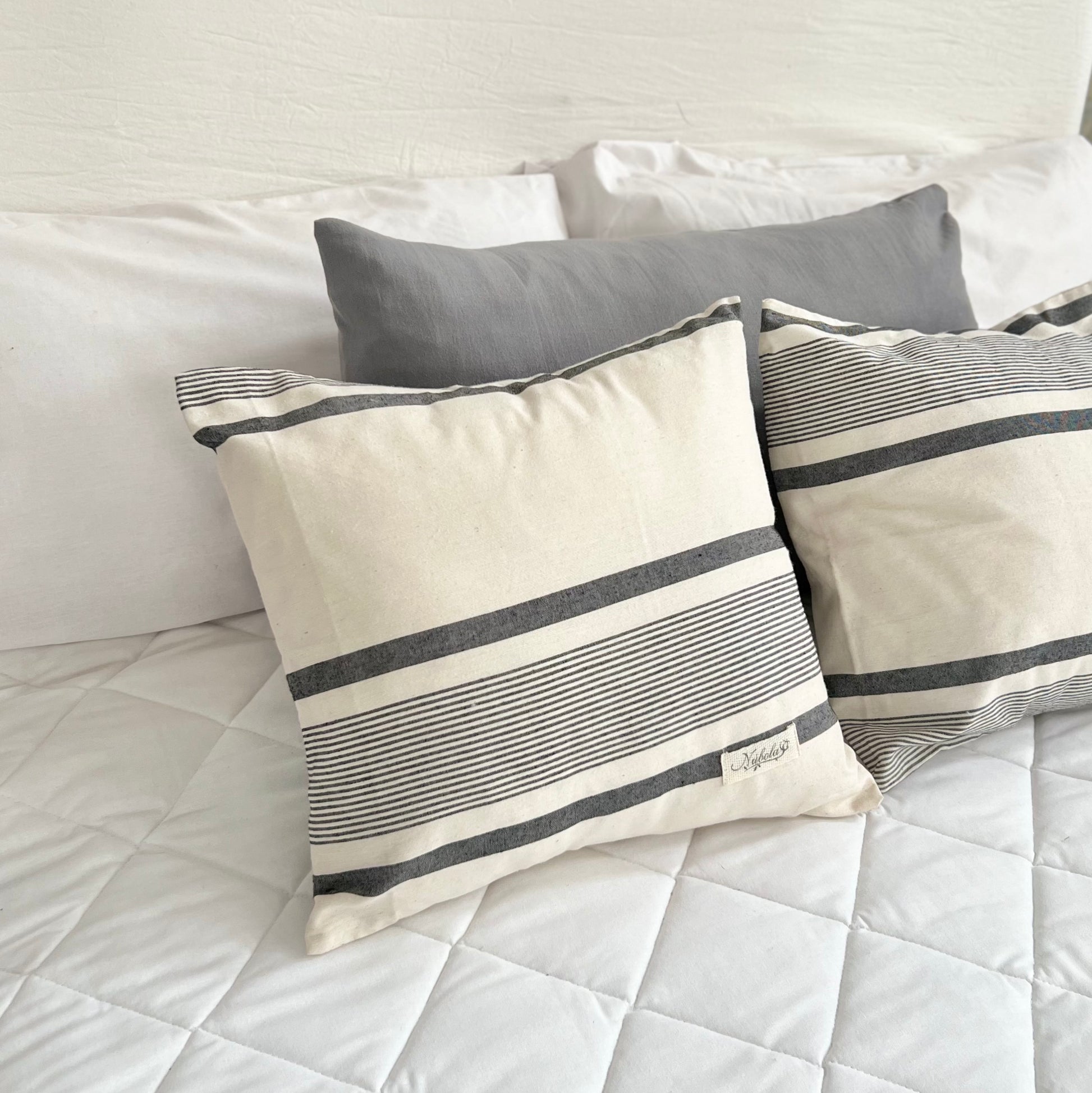 Funda para almohadón. Tusor rayado 100% algodón.
